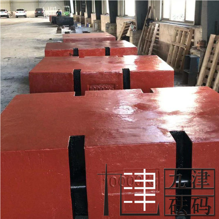 砝碼形狀與使用方式的關(guān)系: 鎖形設(shè)計(jì)形狀,鎖形就是我們古老銅鎖的形狀,整體似正方體,中間有一橫杠,適合用吊機(jī)搬運(yùn)。 矩形設(shè)計(jì)形狀,并要求在砝碼兩側(cè)有可用于裝卸的溝槽和在砝碼底部用叉車(chē)搬運(yùn)的搬運(yùn)溝槽。砝碼的邊和角應(yīng)修圓,表面不應(yīng)有銳邊或銳角和的砂眼,以**止磨損和積灰。 表面情況:為提高砝碼的性和硬度,對(duì)砝碼表面應(yīng)有適當(dāng)?shù)慕饘馘儗踊蛲繉印F桨逍雾来a適合用吊機(jī)搬運(yùn),也適合用叉車(chē)搬運(yùn),亦可疊加使用。 圓滾型設(shè)計(jì)形狀:圓滾形砝碼中間為橢圓形,兩邊各有一把手,可兩個(gè)人滾動(dòng),也可用吊機(jī)搬動(dòng)。 圓柱形設(shè)計(jì)形狀:圓柱形就是我們常見(jiàn)的圓柱的那種形狀,砝碼比較高,上端跟鎖形砝碼一樣都有一吊耳,適合用吊機(jī)搬動(dòng)。 10噸鑄鐵砝碼-**直銷(xiāo) 質(zhì)保一年 |